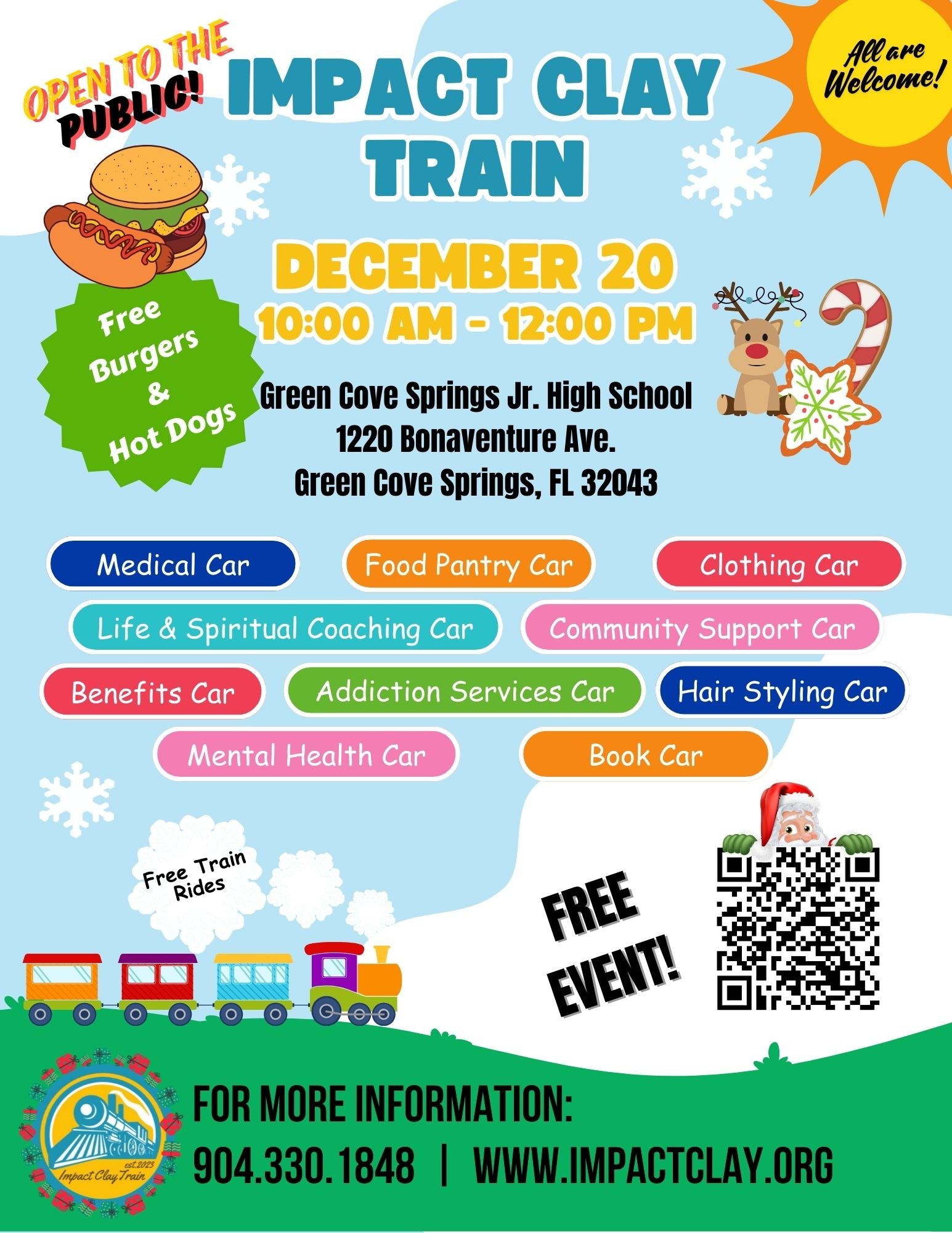The Impact Clay Train's next stop will be at Green Cove Springs Jr. High School on December 20th.  We look forward to continuing to connect the community to mobile neighborhood care teams comprised of healthcare professionals and community workers. They each play a crucial role in improving healthcare and social services access with positive outcomes in local communities.