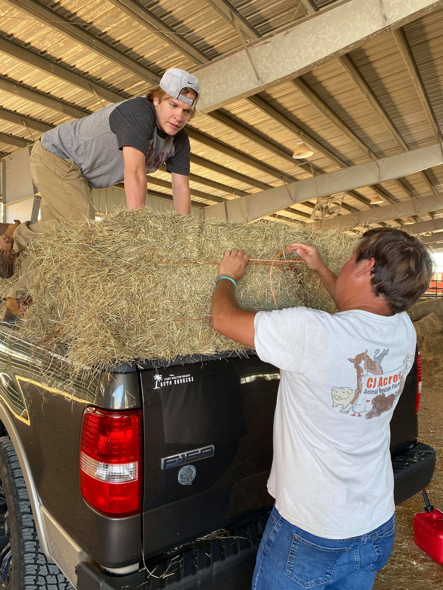 Each year, after the Clay County Fair wraps up, they donate hundreds of bales of hay to our sanctuary. We use this gift for both food and bedding throughout the year. There's just one little challenge...we have to load it, transport it (we're just 20 minutes from the fairgrounds) and unload it...and that's where y'all come in!