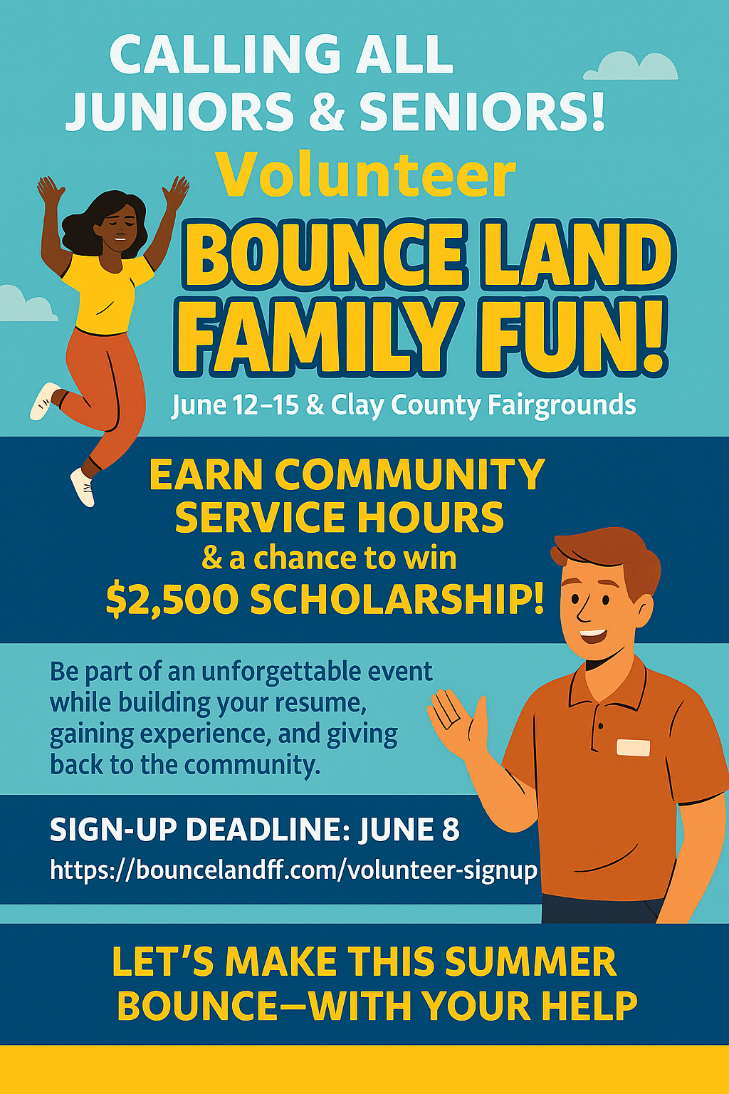 At Bounce Land Family Fun, we create high-energy, family-friendly events filled with inflatable bounce houses, obstacle courses, games, music, and more. Our mission is to provide a safe and joyful space where kids can play freely and families can make lasting memories. We host multi-day events that bring communities together through laughter, fun, and connection. With the help of our dedicated volunteers, we ensure every child has a safe, exciting experience and every guest leaves with a smile. From setup to clean-up, from guiding guests to keeping the fun flowing, our team works together to deliver unforgettable moments of joy.