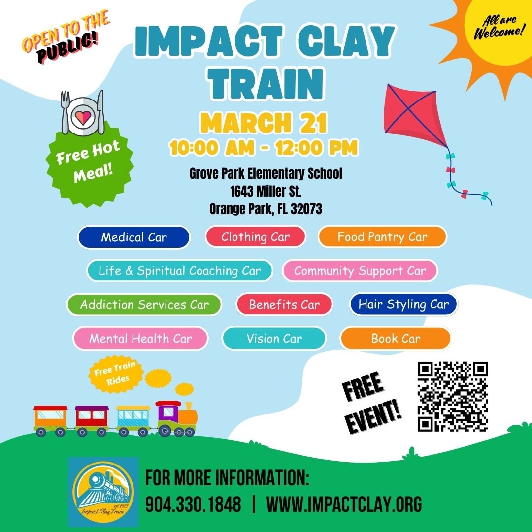 The Impact Clay Train is making its next stop at Grove Park Elementary School on March 21, 2026.